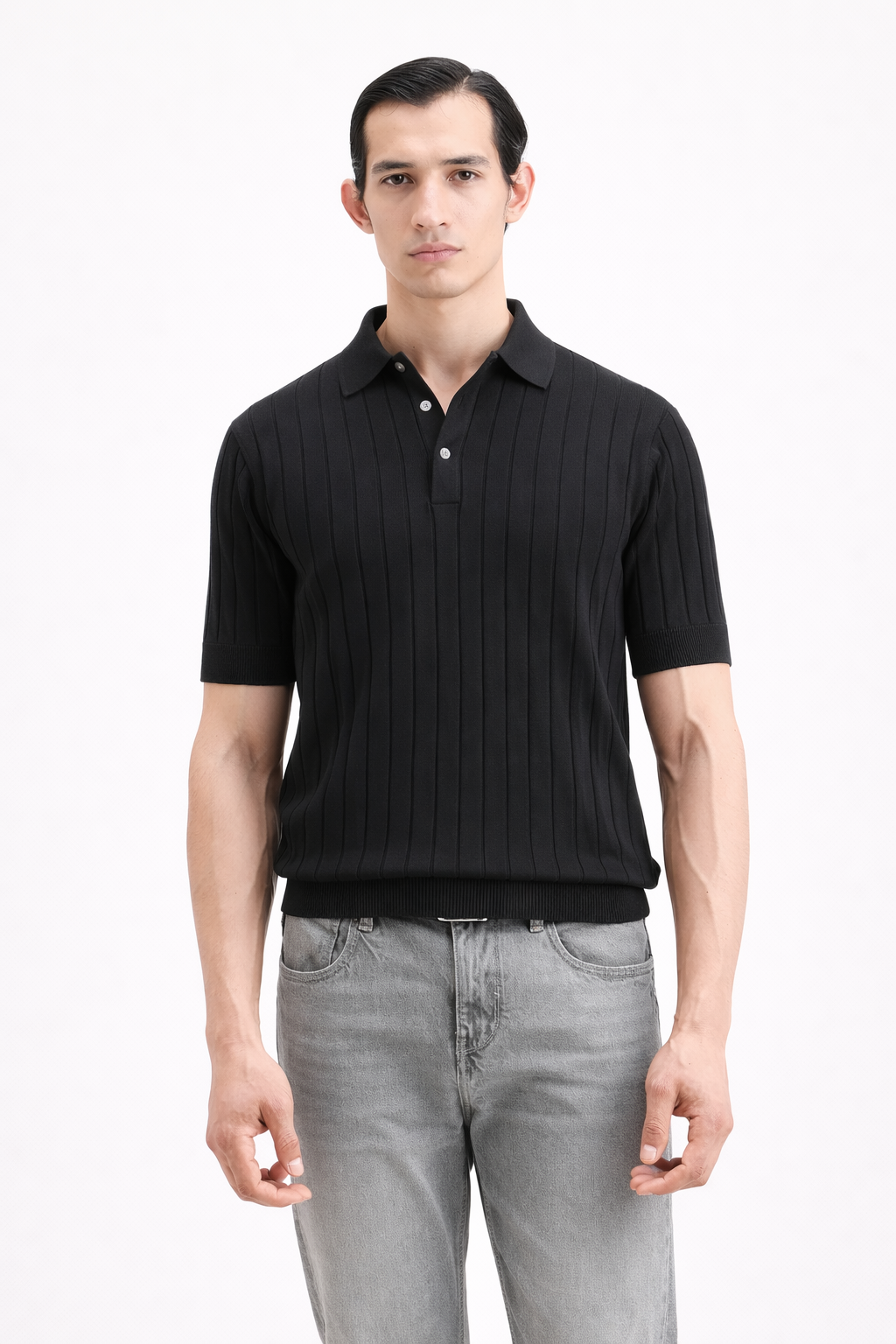 Textured Knit Black Tee